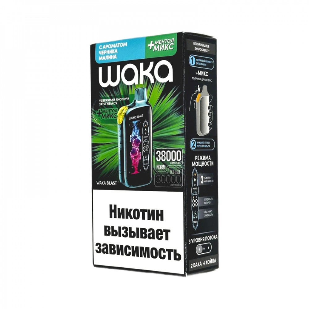 WAKA BLAST 38000 Hard - Черника малина + ментол микс - купить в Губкинском