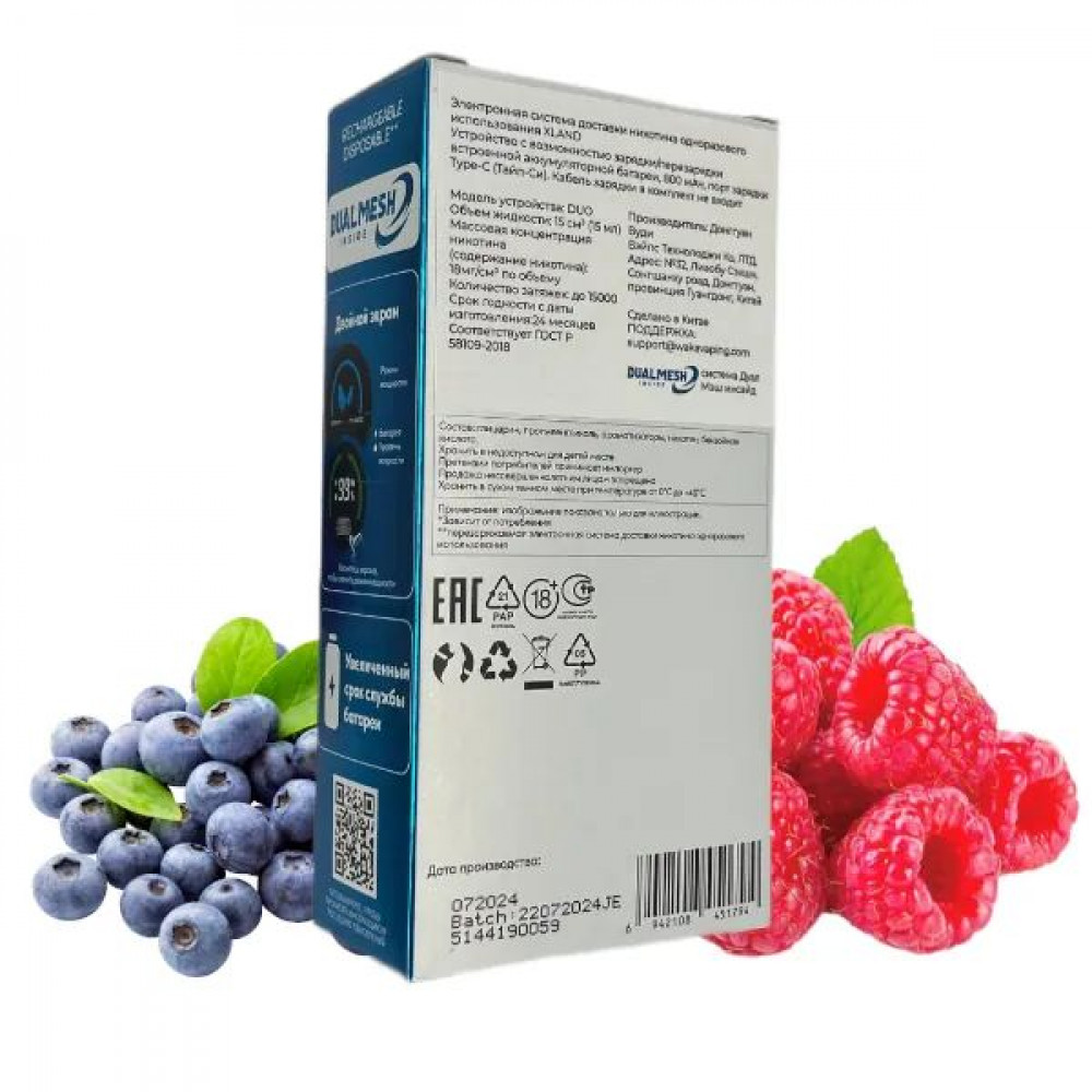 | ИспарительDual Mesh | Количество затяжек, шт15000 | ЛинейкаWAKA XLAND |
